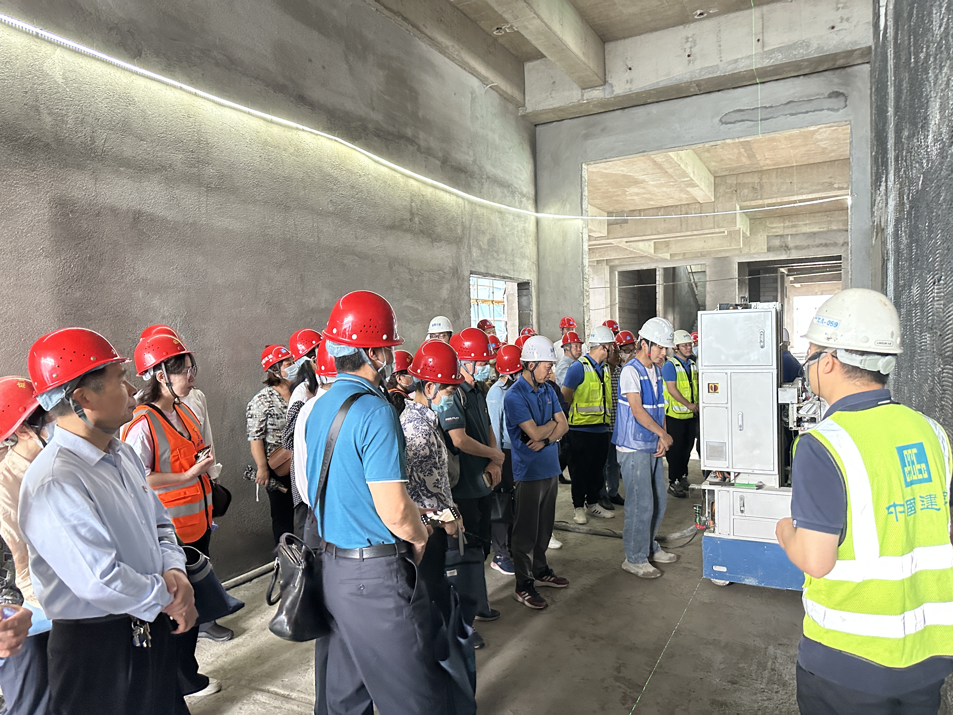 会前,星空web版登录入口精心组织与会党支部书记参观了福耀科技大学(暂名)项目建设工地。一进入项目现场,一座座建筑主体已完成封顶,施工现场井然有序、干净整洁,俨然一副“静谧平和”的景象,绿色施工的理念在这里展现得淋漓尽致。大家不仅参观了项目建设工地的智慧建设实验室、党建活动室等,还深入施工现场实地领略了智能机器人施工,纷纷感叹人工智能时代的先进性。
